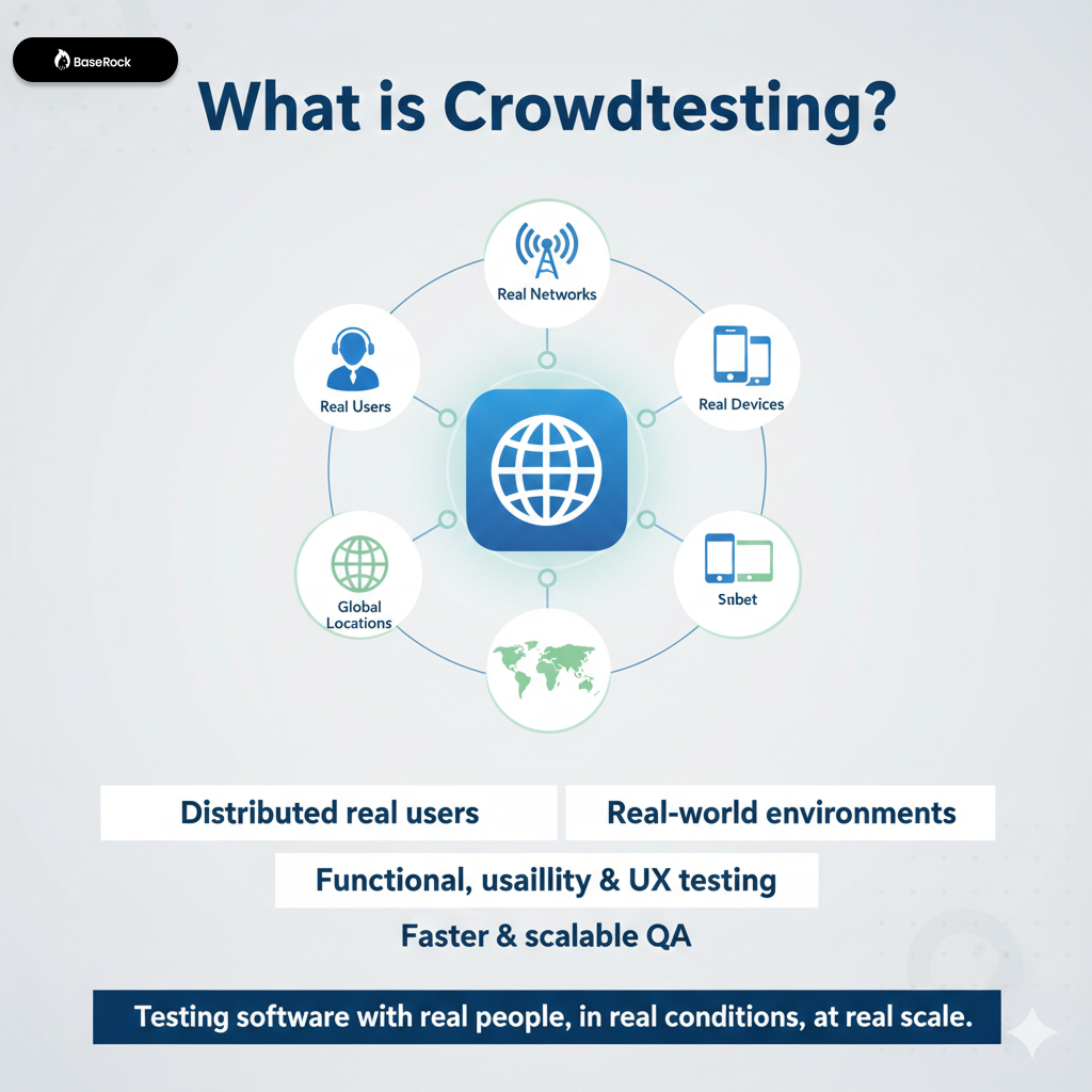 Crowdtesting plays a vital role in modern software development by bridging the gap between controlled test environments and real-world usage. By leveraging real users, diverse environments, and scalable testing models, organizations can deliver more reliable, user-centric products. When combined with intelligent QA platforms like BaseRock.ai, crowdtesting becomes a powerful pillar of a future-ready testing strategy—ensuring speed, quality, and confidence at every release.